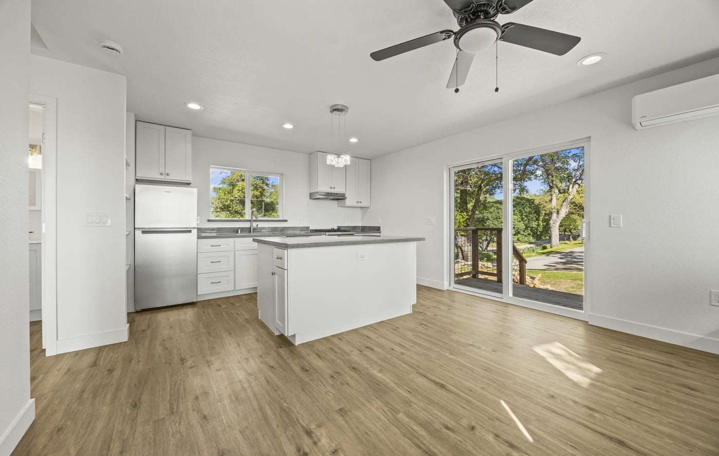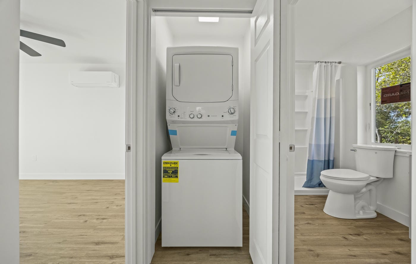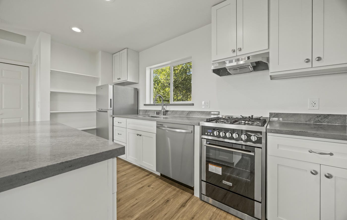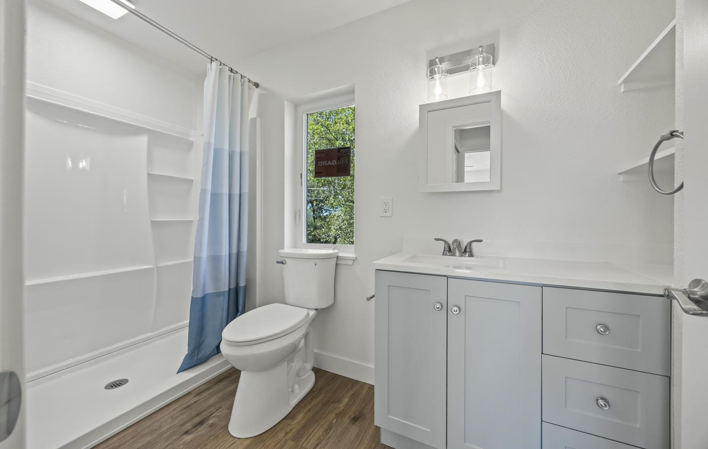 For this project, the homeowners wanted their parents to stay close by but have their own space and privacy. To achieve this, we built this detached ADU complete with its own kitchen, laundry space, full bathroom, livingroom, and covered porch with a view. The space was designed to have wider doorways and hallways to commodate walker or wheelchair use in the space. Our team helped select and furnish the ADU to have a timeless and low maintenance finishes.