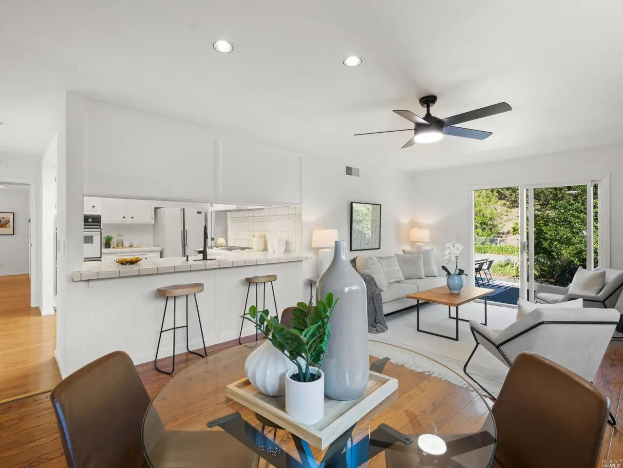 This design-build renovation transformed a 1965 kitchen into an open, modern space connected to the adjacent living areas. We developed and presented new layout options that became the basis for the remodel, opening the kitchen to the surrounding areas and greatly improving the circulation and usability of the home.